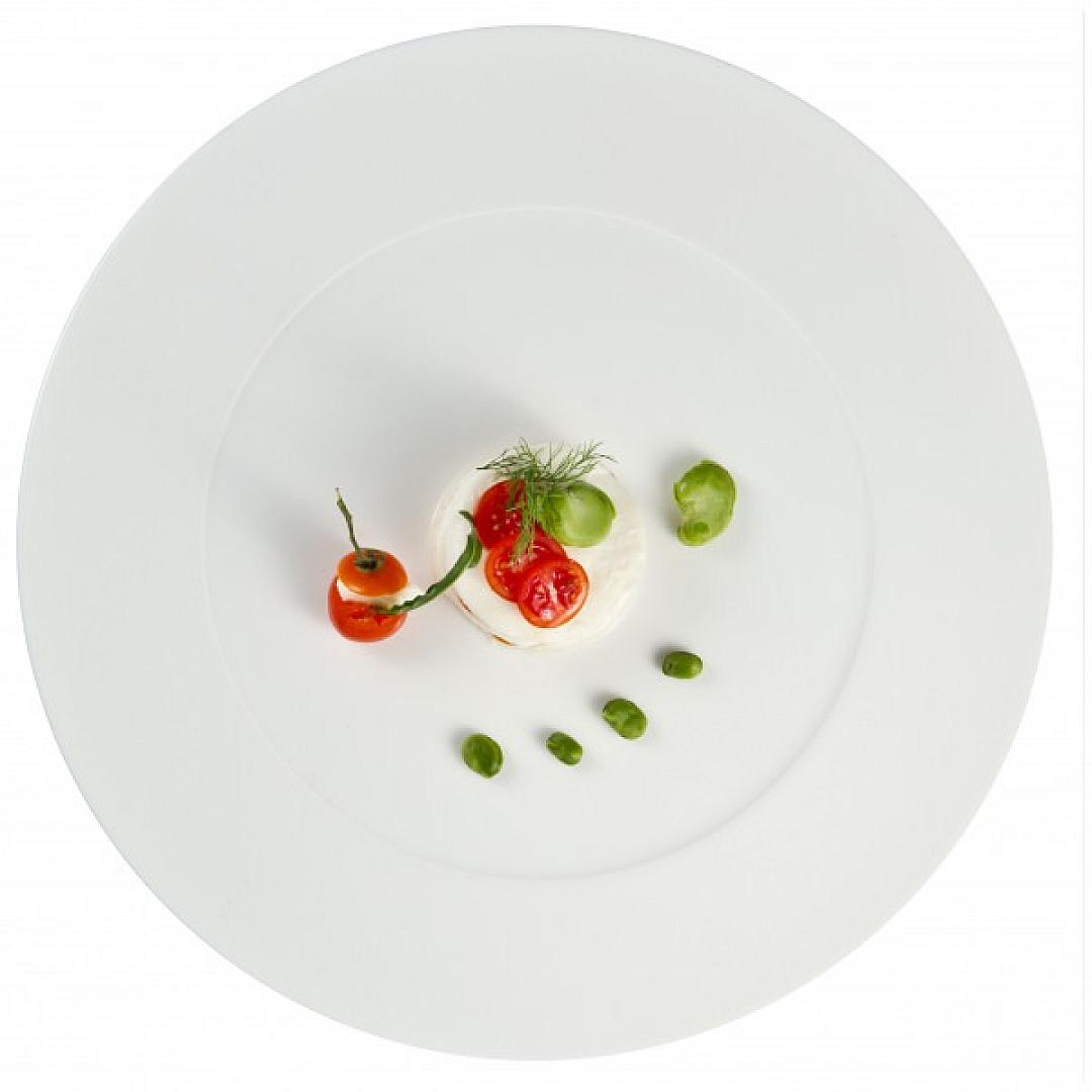 Millefoglie di mozzarella con pomodorino appassito in forno e fave novelle saltate in padella