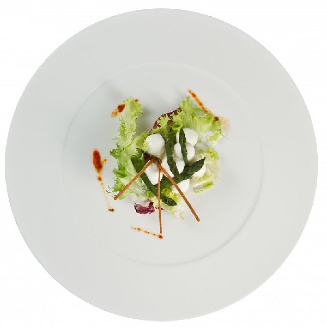Gocce di panna con asparago verde ad insalata