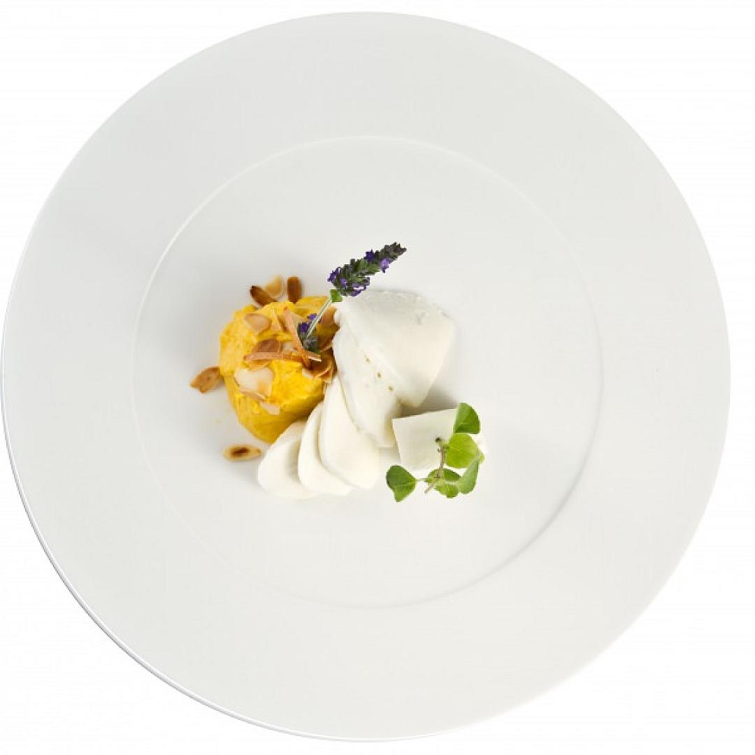 Mozzarella delattosata con jambonetto di carota e mandorle