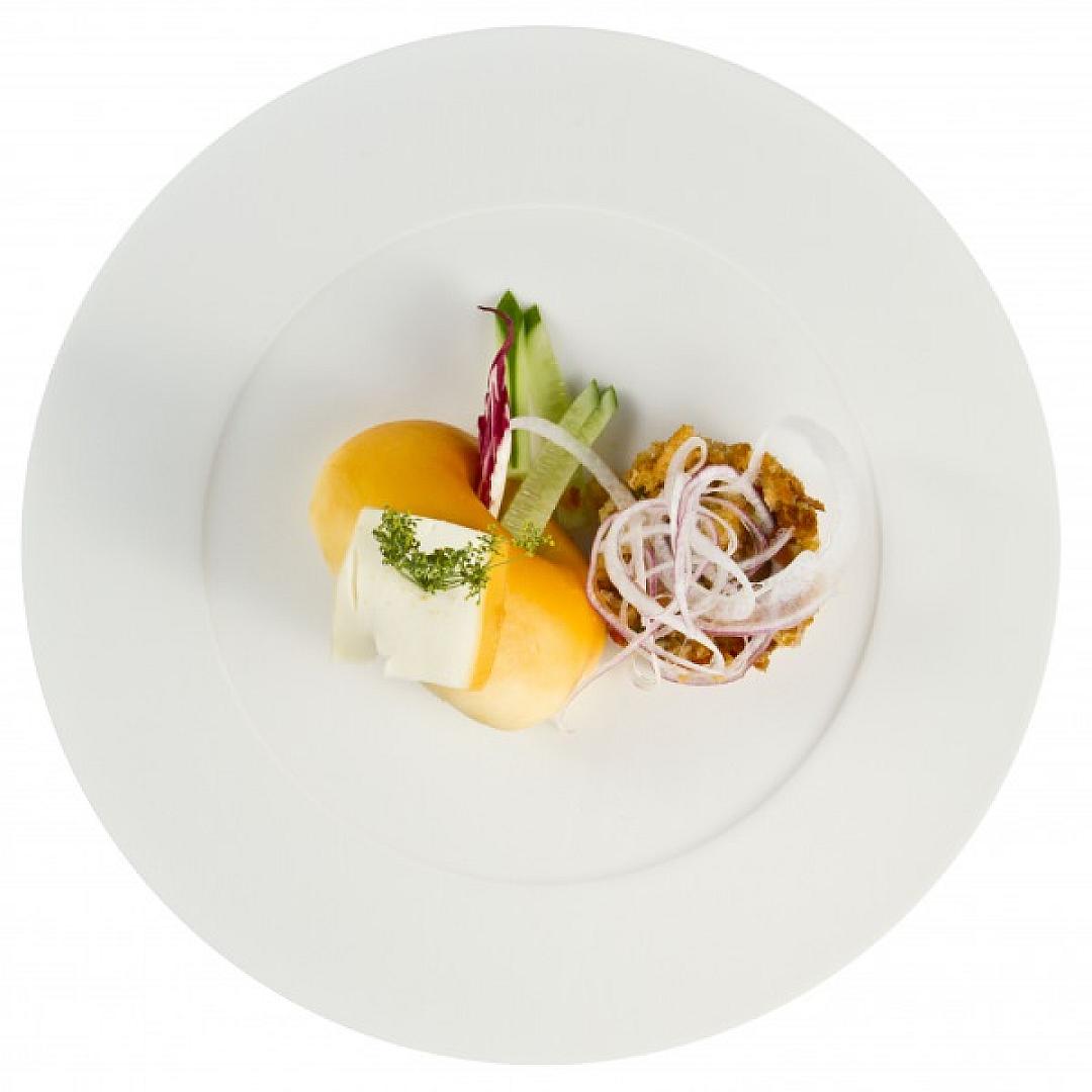 Ciambella affumicata con panzanella all,antica e cipolla ghiacciata