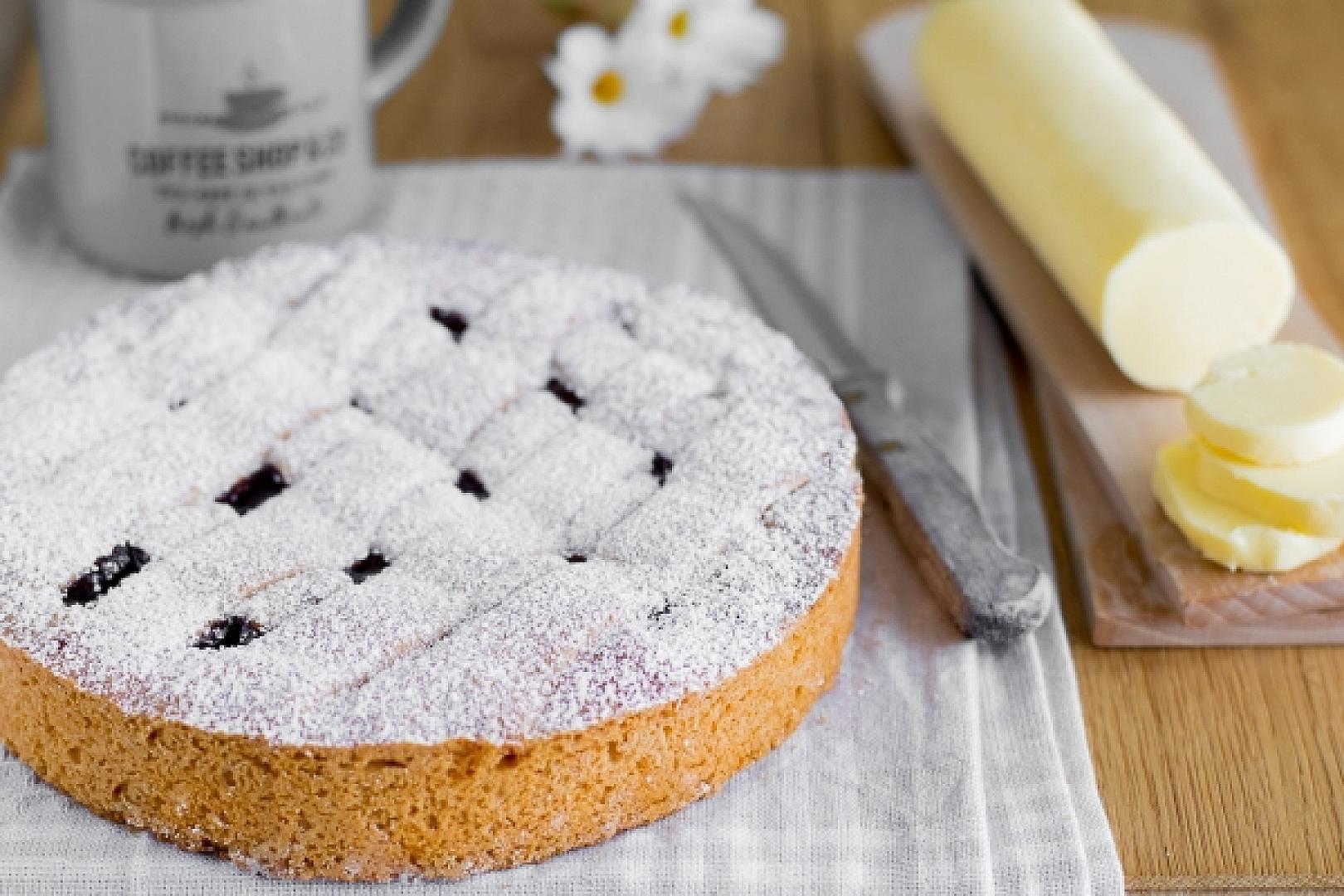 Fate acclimatare la frolla per circa 15 minuti, spolverate di farina una spianatoia e stendete la pasta fino ad una altezza di circa ½ cm. Imburrate lo stampo e trasferite la frolla su di esso, con i polpastrelli fate aderire bene l’impasto su tutta la superficie avendo cura di eliminare le bolle d'aria. Tagliate la pasta in eccesso rifinendo con un coltello i bordi dello stampo e bucate il fondo con i rebbi di una forchetta. Sistemate la confettura all’interno del guscio di frolla e con la pasta avanzata, preparate delle strisce di circa 1,5 cm da incrociare sulla crostata. Lasciate la crostata in frigorifero per circa 60 minuti, così da far stabilizzare la frolla in modo tale che non si spacchi in cottura.